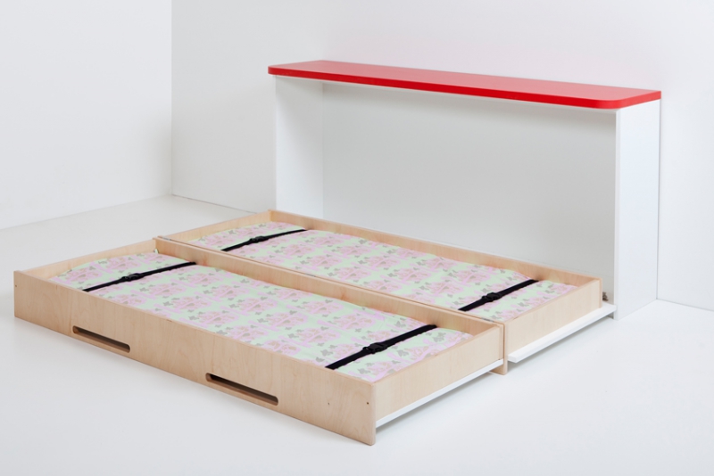 Janella-monitoimisänky tarjoaa nukkumatilat kahdelle lapselle. Sängyn laverityyppinen ratkaisu ja selkeä mitoitus mahdollistavat kalusteen monikäyttöisyyden. Patjat ovat samankokoiset kuin kaappisängyssäkin. Suljettuna sänky vie vain vähän tilaa ja toimii hyvin myös työtasona tai tilanjakajana tarpeen mukaan. Lisävarusteena saatavalla istuinpehmusteella sänkyä voidaan käyttää myös penkkinä. Kysy lisää!