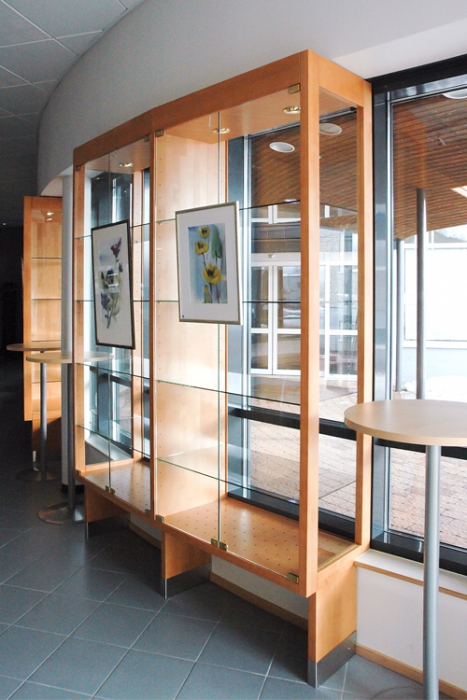 Näyttävät vitriinit arkkitehdin suunnitelman tai tilaajan toiveiden mukaan. Perinteisen lasin lisäksi on mahdollista käyttää mm. särkymätöntä, iskuja kestävää Hammerglass-lasia.